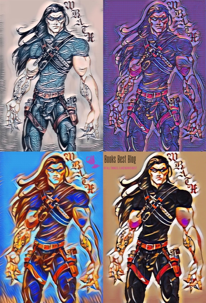 ”Wrath was six feet, six inches of pure terror dressed in leather. His hair was long and black, falling straight from a widow’s peak. Wraparound sunglasses hid eyes that no one had ever seen revealed. Shoulders were twice the size of most males’. With a face that was both aristocratic and brutal, he looked like the king he was by birthright and the soldier he’d become by destiny.”