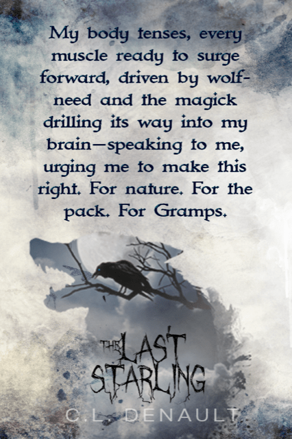 Gramps projects a wolf-thought to bring us close. He sniffs the air, and we do the same. The smell of the Trespasser is still there. Dark and menacing. Something lurks in the Starling, a territory long forbidden to those who drink blood to survive. My pack growls in unison. For us, this is more than just a threat.