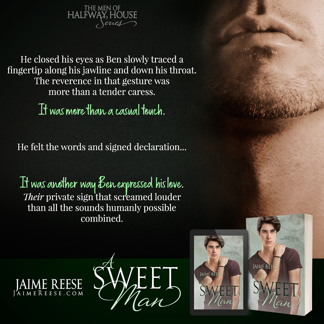A Sweet Man is an interconnected standalone within The Men of Halfway House series. It is a story about the power of love, the meaning of family, and never giving up on a dream. It includes wounded hearts, an age-gap romance, and enough cake and sweetness to give you a toothache.