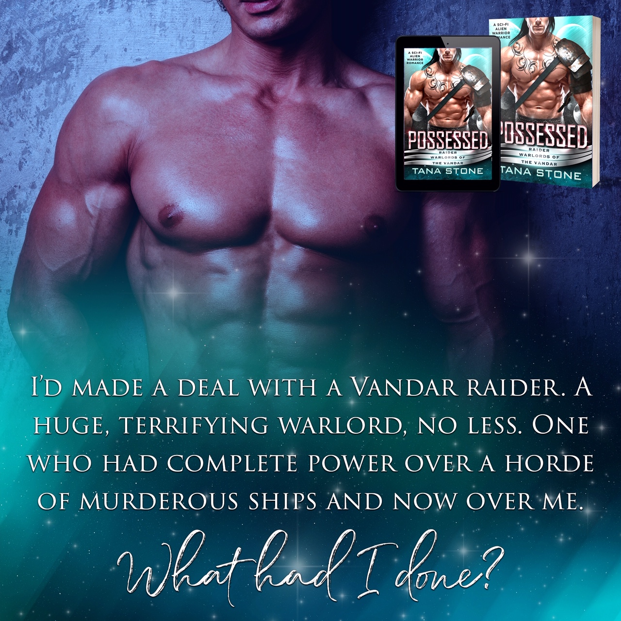 If you like dominant and dangerous alien warriors, alien abduction-to-seduction romance, and hot scenes with a happily ever after, you’ll love Possessed, the first book in Tana Stone’s sci-fi romance Raider Warlords of the Vandar series. Each book can be read as a standalone.
