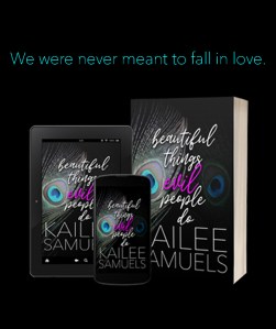 A Dark Romance, Kailee Samuels’ Beautiful Things Evil People Do, is a full length, standalone with a happily ever after. Recommended for mature readers 18+, not suitable for people sensitive on hard to read dark themes. BTEPD is about meeting challenges head on, finding fearless courage within, and embracing love wherever it may lead.