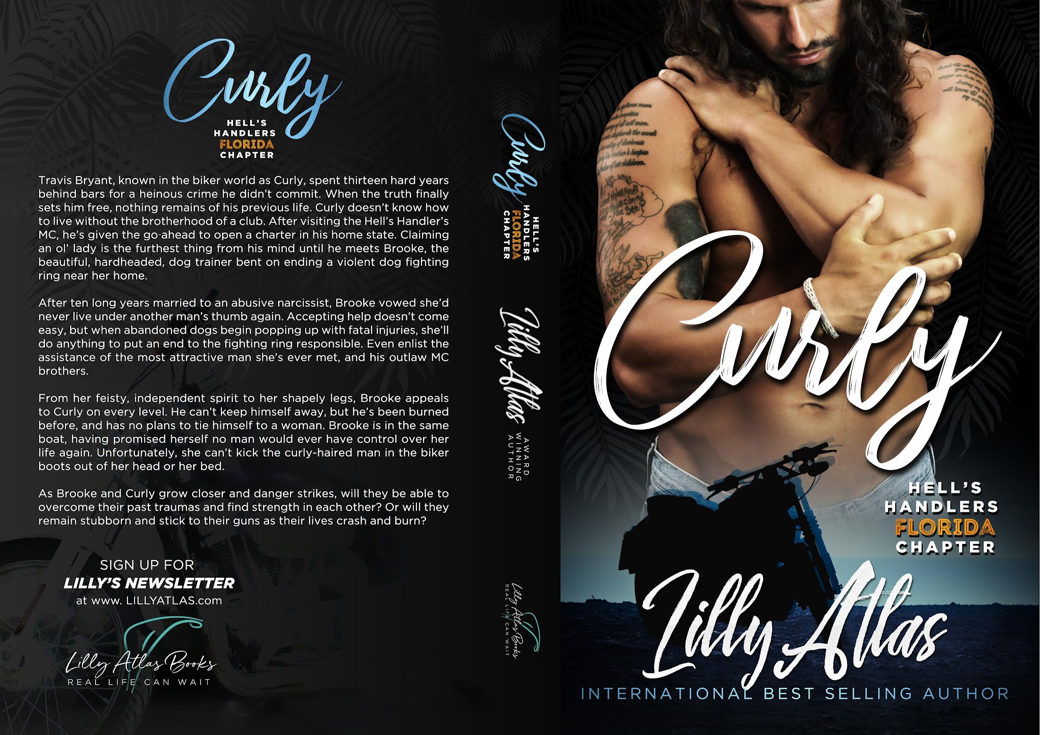 Travis Bryant, known in the biker world as Curly, spent thirteen hard years behind bars for a heinous crime he didn’t commit. When the truth finally sets him free, nothing remains of his former life. Curly can’t imagine living without the brotherhood of a club. After visiting the Hell’s Handler’s MC, he’s given the go-ahead to open a charter in his home state. Claiming an ol’ lady is the furthest thing from his mind until he meets Brooke, the beautiful, hardheaded dog trainer bent on ending a violent dogfighting ring near her home.